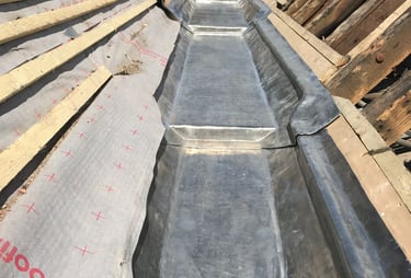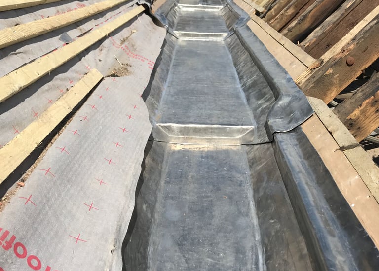 Lead valleys channel rainwater where two roof slopes meet, forming a V-shaped gutter that's critical for drainage. These high-traffic water areas require durable, flexible materials to withstand constant water flow and roof movement.