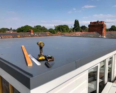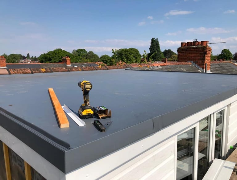 Flat roof repair addresses leaks and damage on roofs with a pitch of less than 10 degrees. Common in the UK on extensions, garages, sheds, and commercial buildings, flat roofs use various materials including felt (bitumen-based), EPDM rubber membrane, GRP (fibreglass), and PVC.