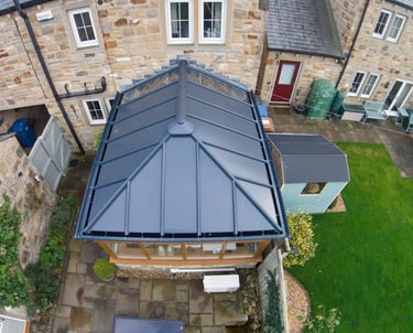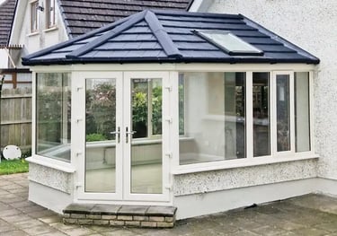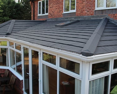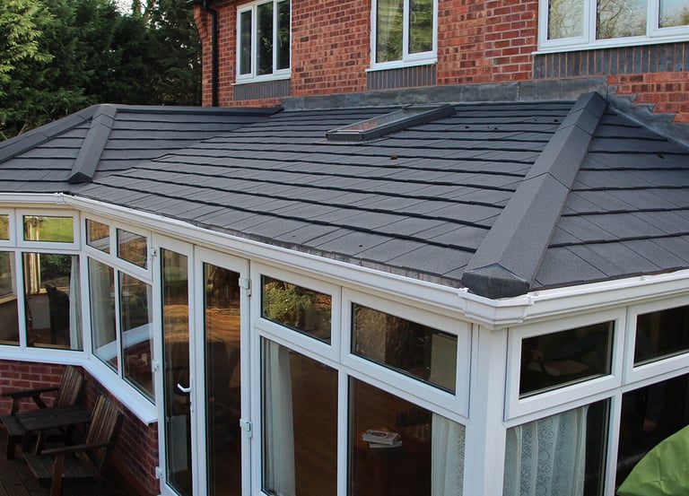Tiled conservatory roofs use lightweight composite tiles designed to replicate traditional roofing materials. They provide excellent thermal insulation, making your conservatory warm in winter and cool in summer. Available in various colours to match your home's existing roof, tiled roofs offer superior soundproofing against rain and wind noise whilst creating a more room-like appearance.